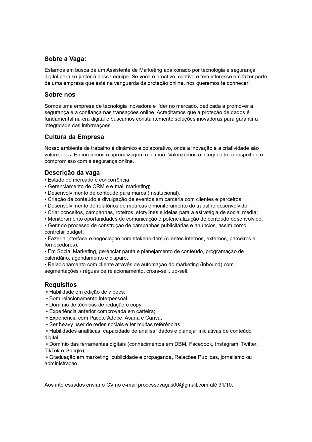Assistente de Marketing
